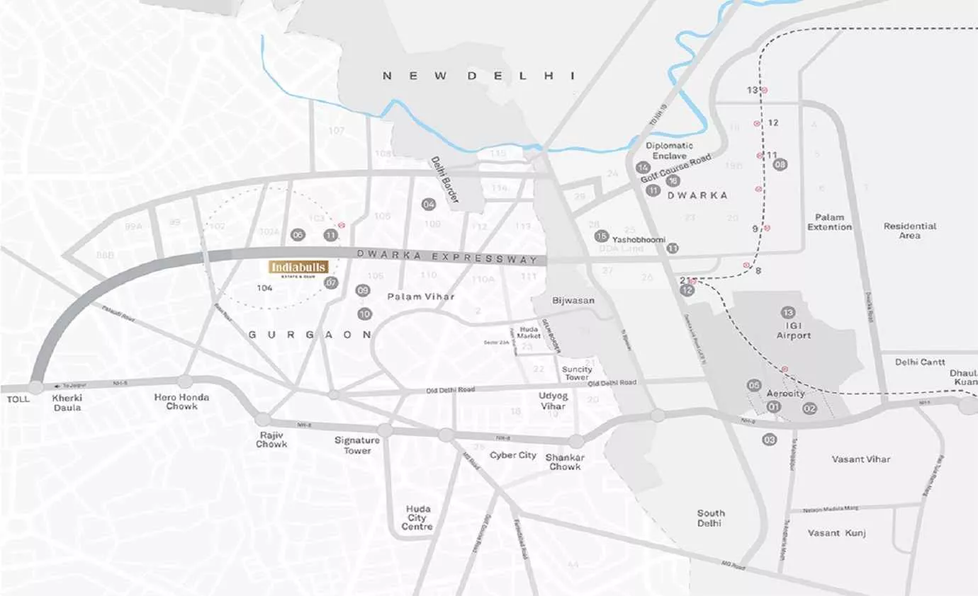 Seamless Location Connectivity One of the most impressive advantages of Indiabulls Estate & Club, Sector 104 Gurgaon, is its prime location. It is situated close to major roads like Dwarka Expressway, these apartments also share smooth connectivity with Delhi, IGI Airport, and other key areas of the NCR.